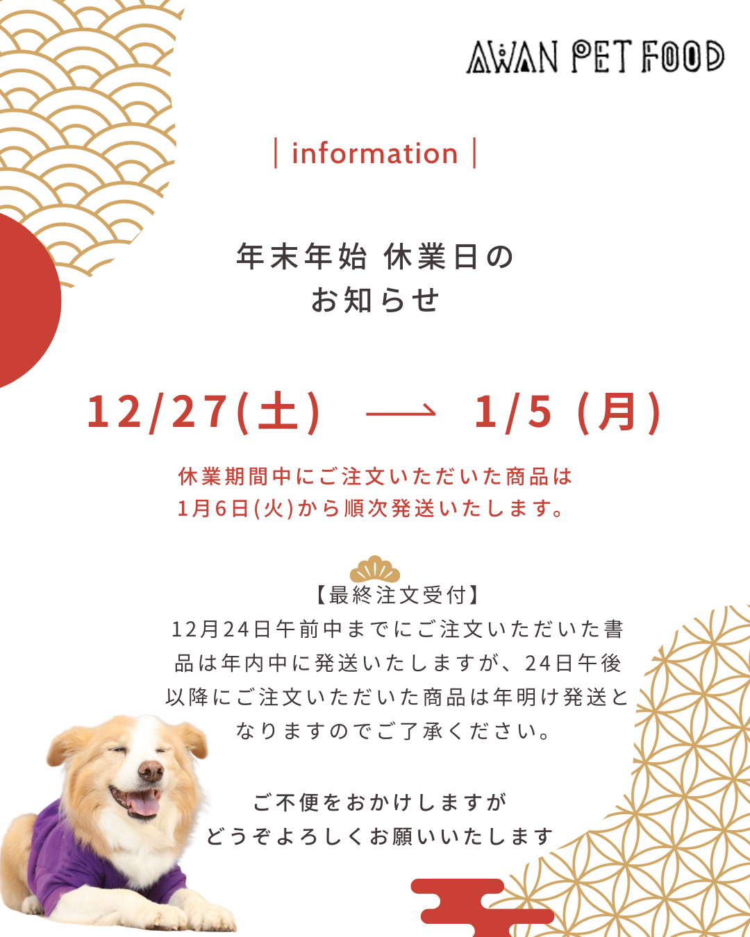2025年12月27日(土)~2026年1月5日(月)まで年末年始休業